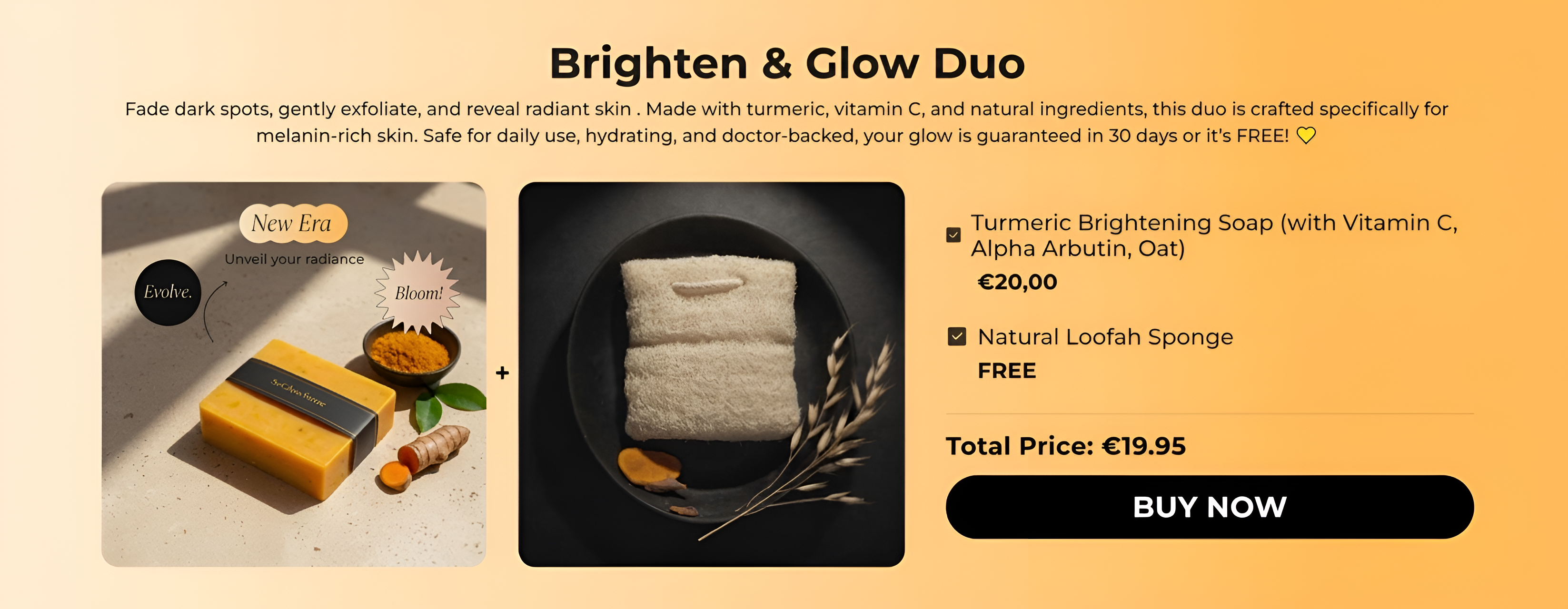 Healthy, glowing skin starts with the right foundation. Our turmeric soap works to cleanse and brighten while the exfoliating loofah sponge helps remove dead skin cells that can dull your natural glow.